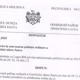 AVIZ PRIVIND DESFĂȘURAREA ŞEDINŢEI DE AUDIERI PUBLICE A PROIECTELOR DE DECIZII PENTRU ȘEDINȚA CONSILIULUI LOCAL SAUCA DIN 30 APRILIE 2026 În conformitate cu prevederile Legii nr. 239-XVI din 13 noiembrie... ЧИТАТЬ ДАЛЕЕ